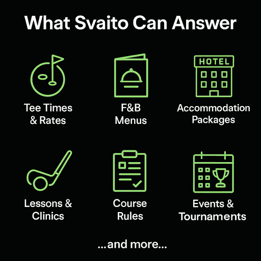 In today’s digital-first world, golfers expect fast, accurate, and 24/7 responses. Yet for most golf courses, valuable staff hours are still spent answering repetitive questions about green fees, tee times, or package details. That’s where Svaito comes in.